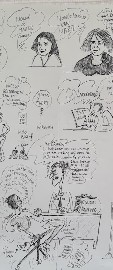 Het werk van Johan van Hall met zijn secretaresse. Op weg naar Concern directeur.. en uiteindelijk 2e man van ABNAMRO onder G. Zalm