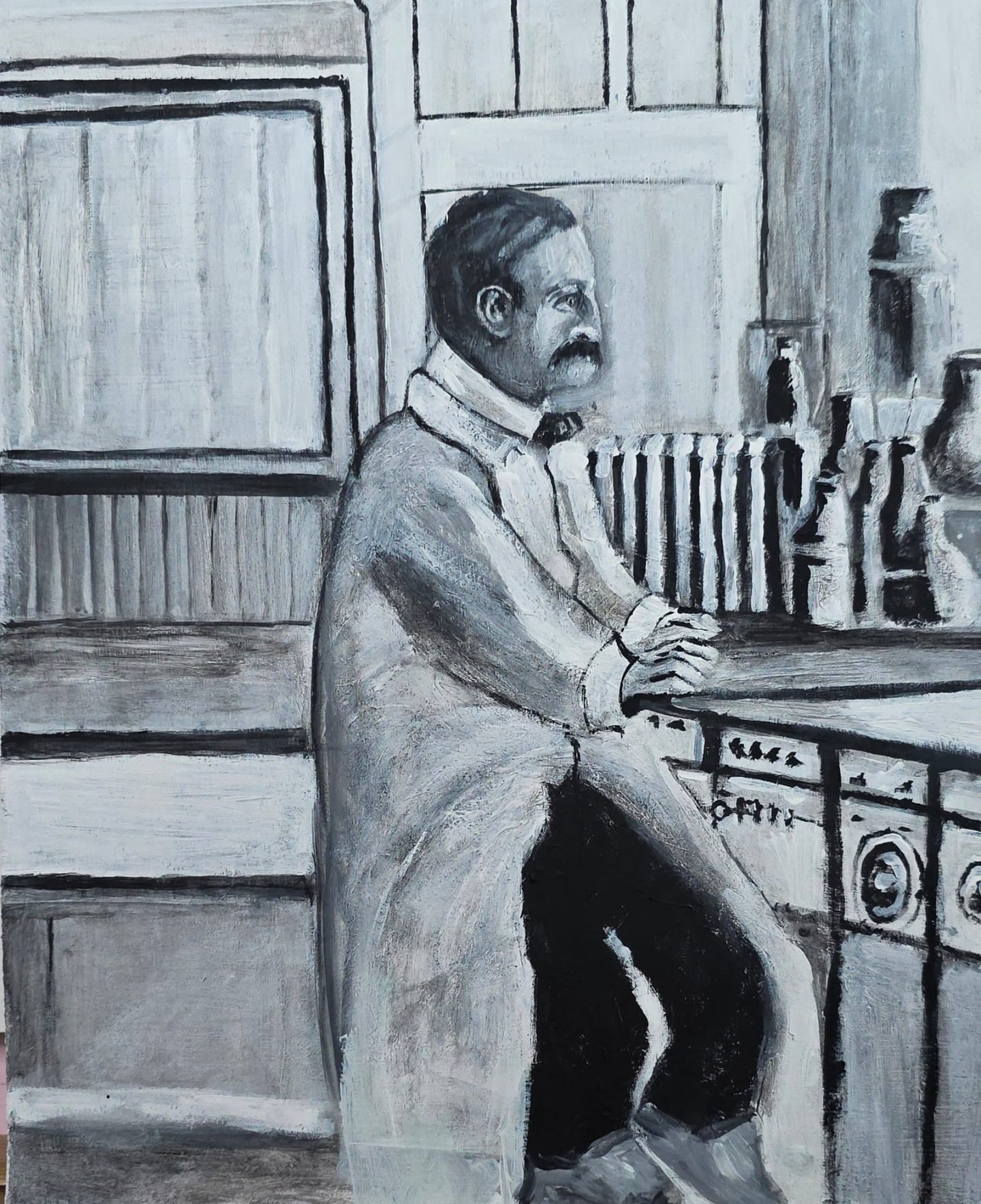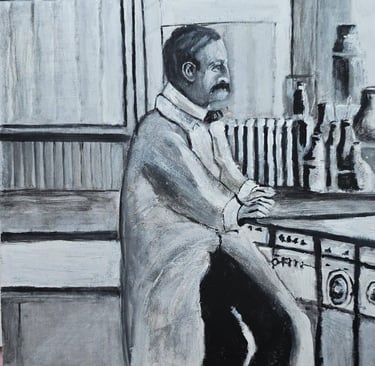 Karl Landsteiner in zijn Laboratorium in Wenen ca. 1900